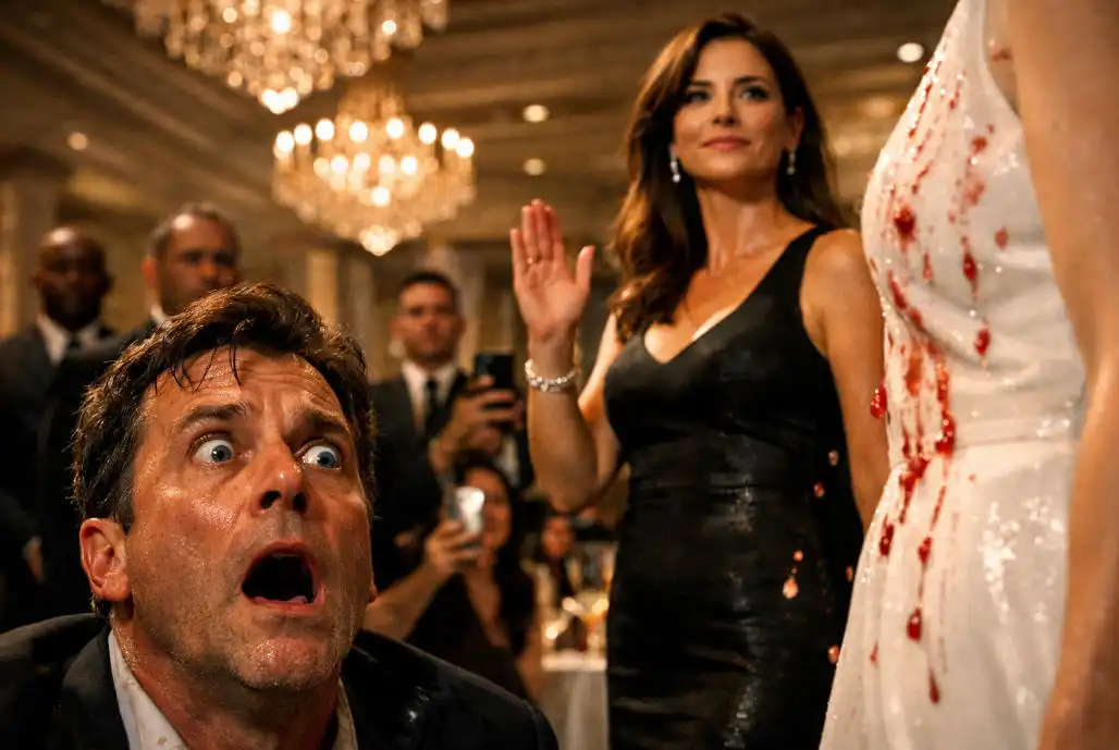 Red wine cascaded down Elena’s dress, blooming like a dark bruise against white silk.