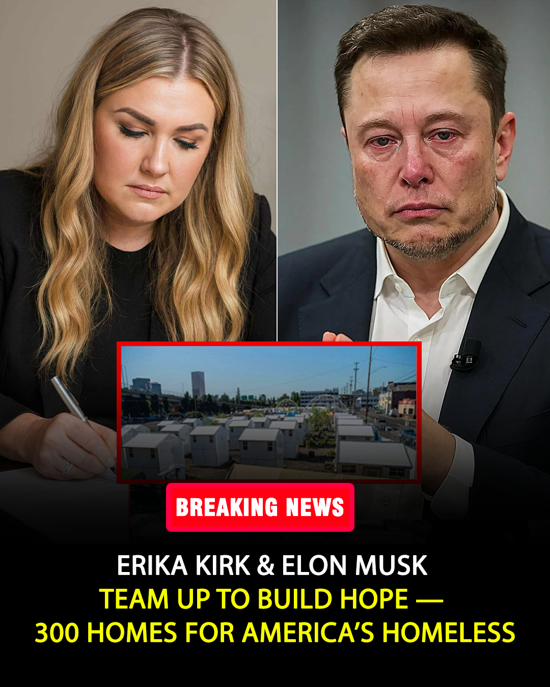 The news broke quietly at first — a single press release buried beneath the noise of a busy news cycle. But within hours, it became impossible to ignore. Erika Kirk, widow of the late Charlie Kirk, had just signed a $50 million partnership with Elon Musk to build 300 homes for the homeless and forgotten.